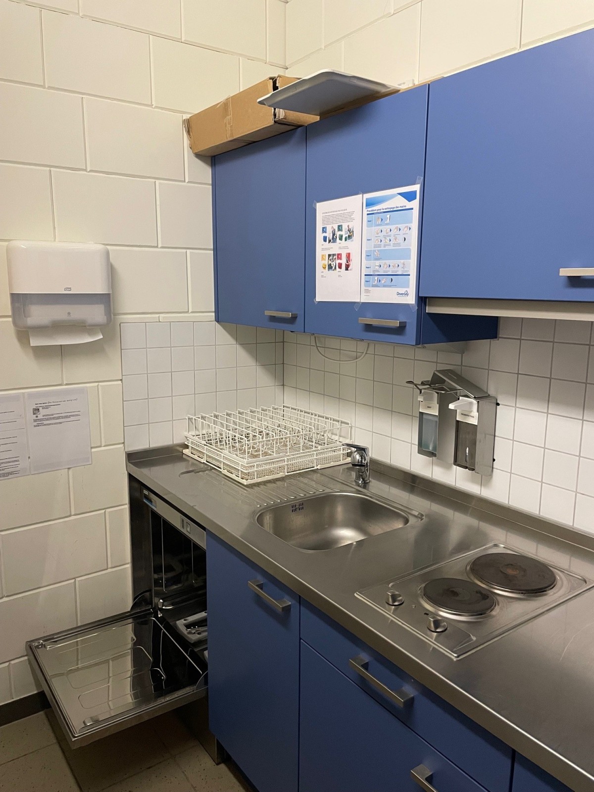 cuisinière 2 plaques, réfrigérateur, congélateur (petit), lave-vaisselles, micro ondes, évier